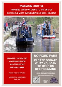 This is a new venture which relies on volunteers so, if anyone local to Uppermill would like to volunteer to help us run the boat, please contact us by email to boating@huddersfieldcanal.org.uk. No previous boating experience is required as we will provide all necessary training.