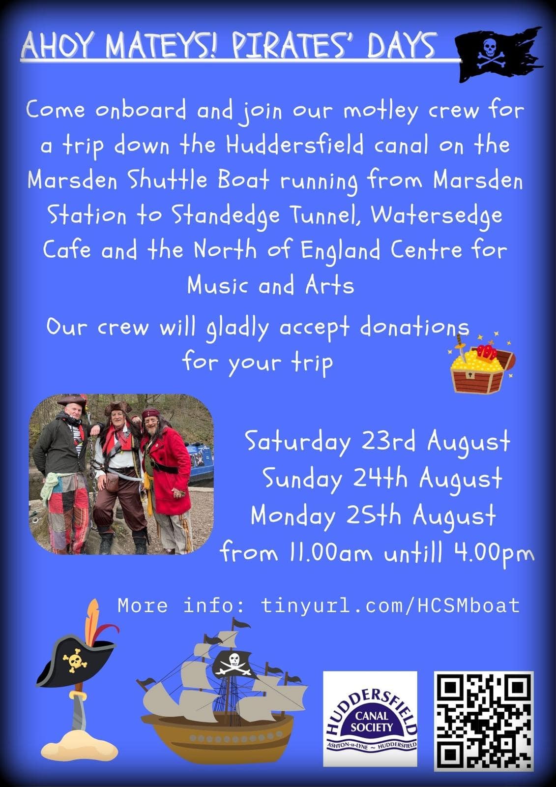 We are now running Thursdays though to Sundays during the local school summer holiday. On the 23 to 25 August bank holiday weekend we plan to run Pirate Days so watch this space – the photos are from our Pirate Days in Uppermill earlier this year.